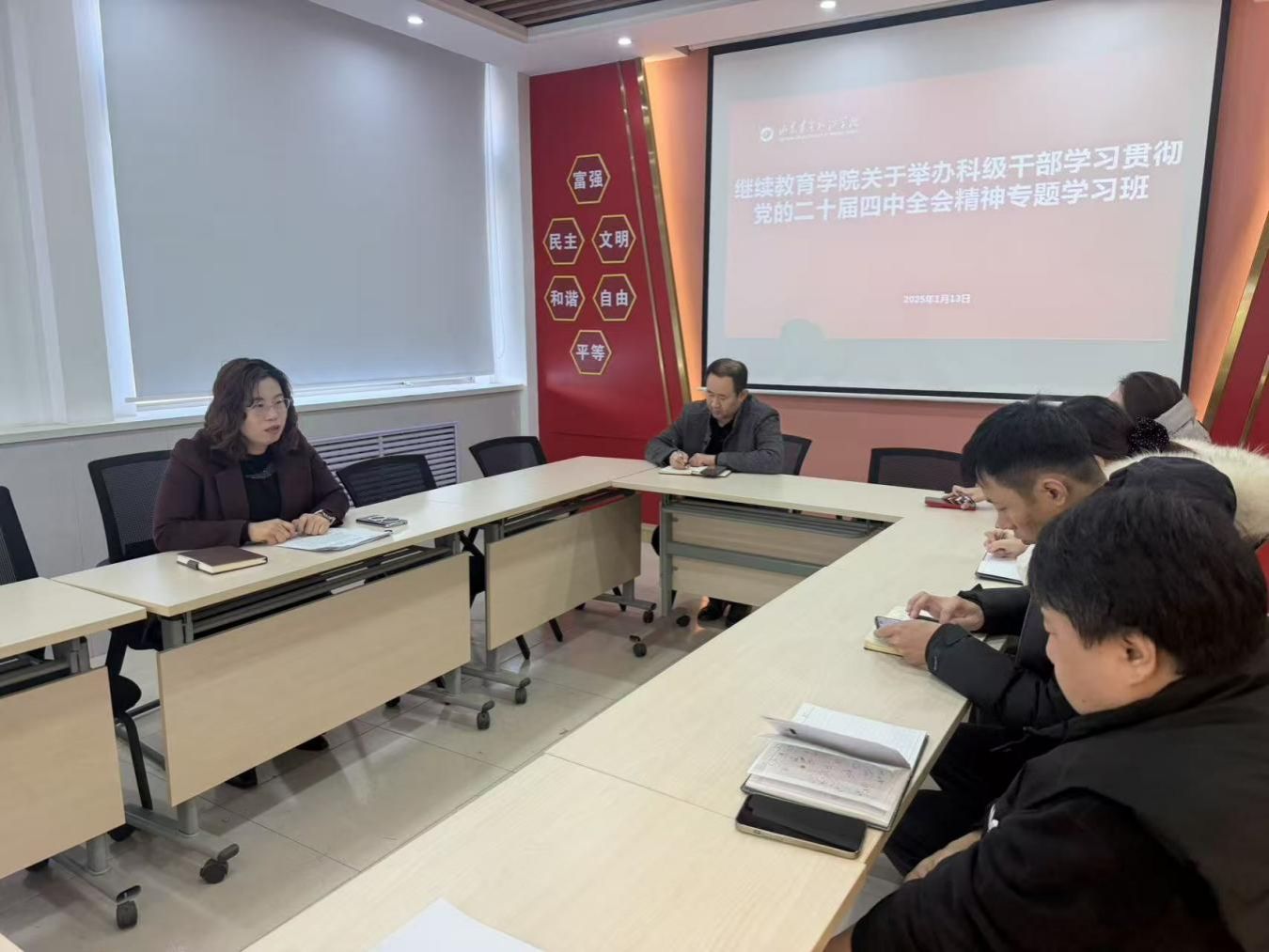 为深入学习贯彻党的二十届四中全会精神,切实把全院科级干部思想和行动统一到全会决策部署上来,1月13日至15日,继续教育学院举办科级干部专题学习班。全体科级干部参加学习并完成全部学习任务。