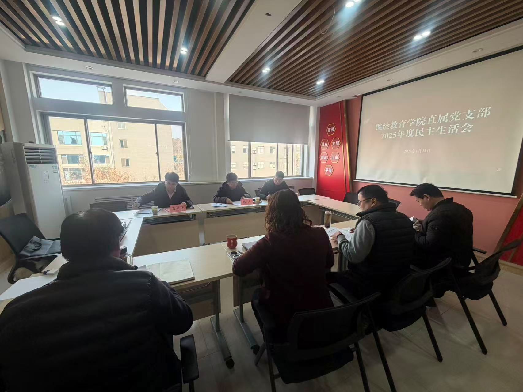 2026年1月23日,继续教育学院直属党支部在学院会议室召开2025年度民主生活会。学校党委委员、副院长张杰,督导组成员学校纪委副书记兼综合处处长王三海、学校党委宣传部(教师工作部)意识形态工作科科长崔法光到会指导,学院领导班子全体成员参会。会议由学院直属党支部书记栾丽萍主持。